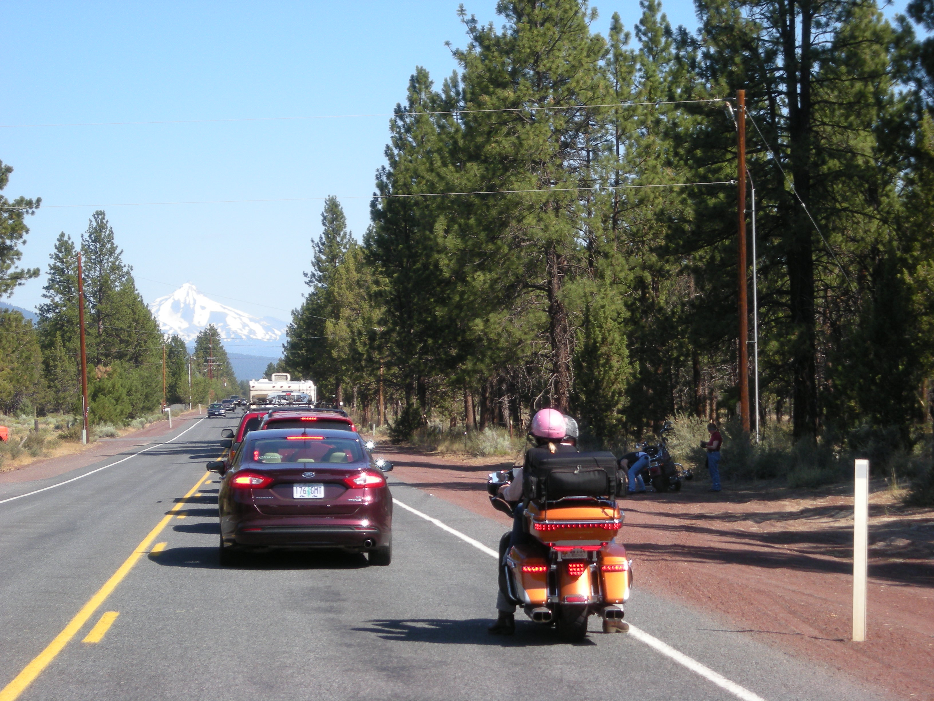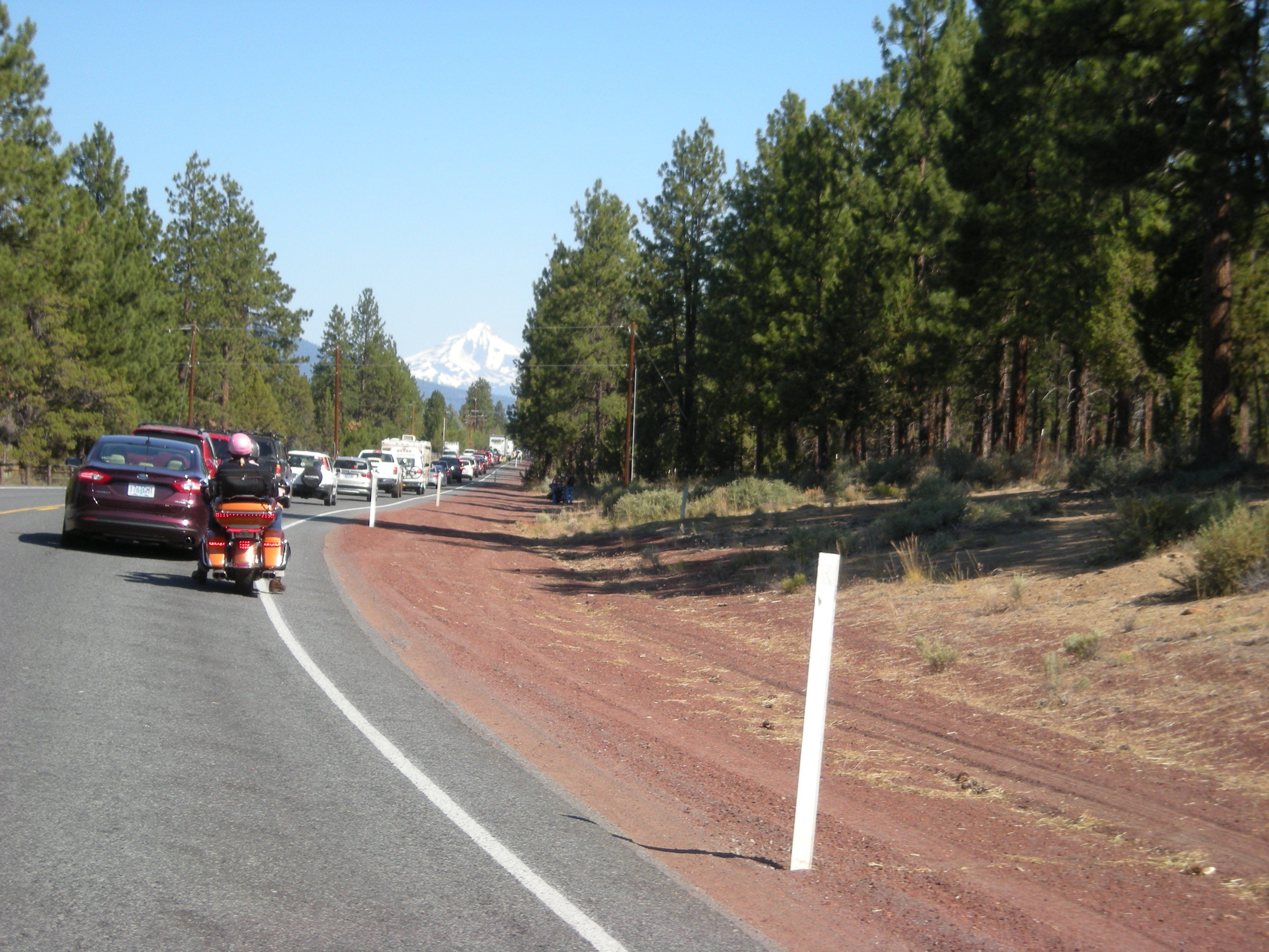We had a great plan for the day. We were leaving Bend and headed for the coast then taking US101 north to near Astoria, Oregon. All in we planned to cover about 280 miles. We might even have time to get to Fort Clatsop today. We ate breakfast in the hotel and the place was crammed with people headed to a quilting festival. I didn’t pay much attention to their conversation. Maybe I should have listened. The town of Sisters was only 14 miles up the road. It appears that anyone who does anything with quilting was in Sisters for this major event. The streets of the town were blocked off including US20 which is exactly where we wanted to go. What should have been an easy 20 minute drive through of a quiet little town became an hour of stop-and-go (mostly “stop”) . I vow to never buy a quilt again.