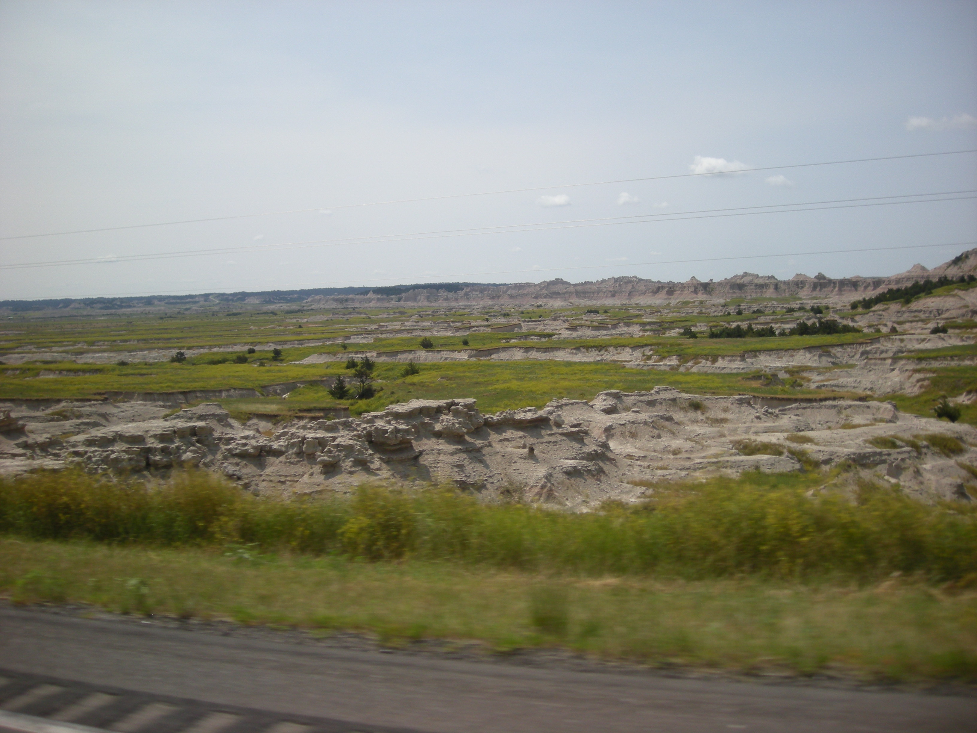 The road was great and deserted. It also led us through a miniature version of the Badlands with the 45 MPH speed limit or the crowds. Jana took some good pictures from the back seat (at 70 MPH) which I’ve included.