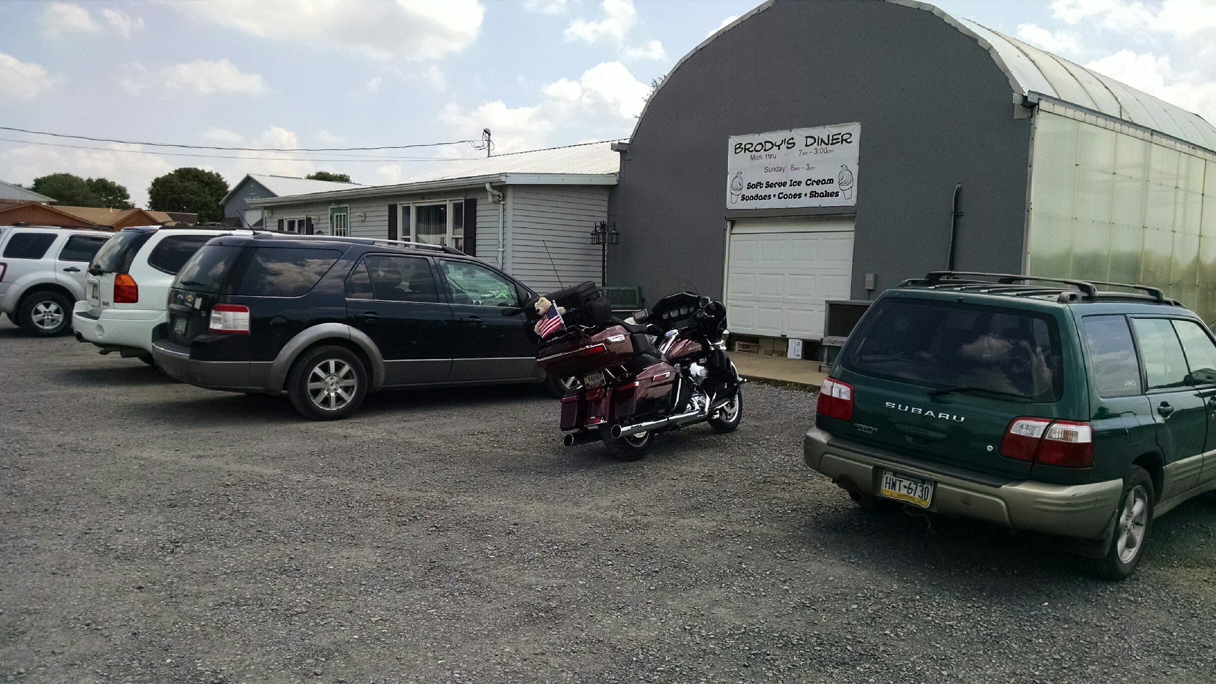 By the time we stopped at our 3rd diner of the day we were getting texts and FaceBook postings telling us how scary the storms were going through Indiana. I almost felt guilty because we were riding in bright sunshine and mid 80’s temperatures. It was warm enough that we both shed the jackets we had been wearing. I said I almost felt guilty but not quite.