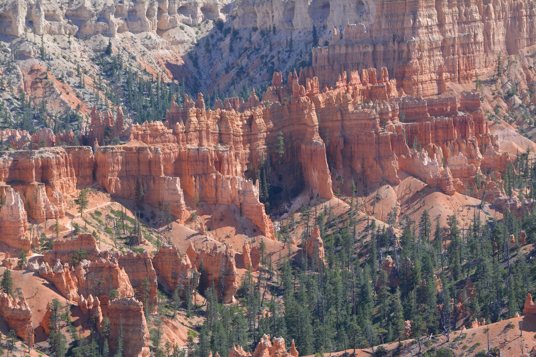 The stone structures at all the parks are known as hoodoo’s. There are a lot of them. Bryce is a magnificent park and if you are young and in shape you can hike down and walk in the valley. That would certainly give you access to some other-worldly scenes. It was too late (both in the day and in my physical conditioning) to try to hike down the canyon so we settled for pictures.