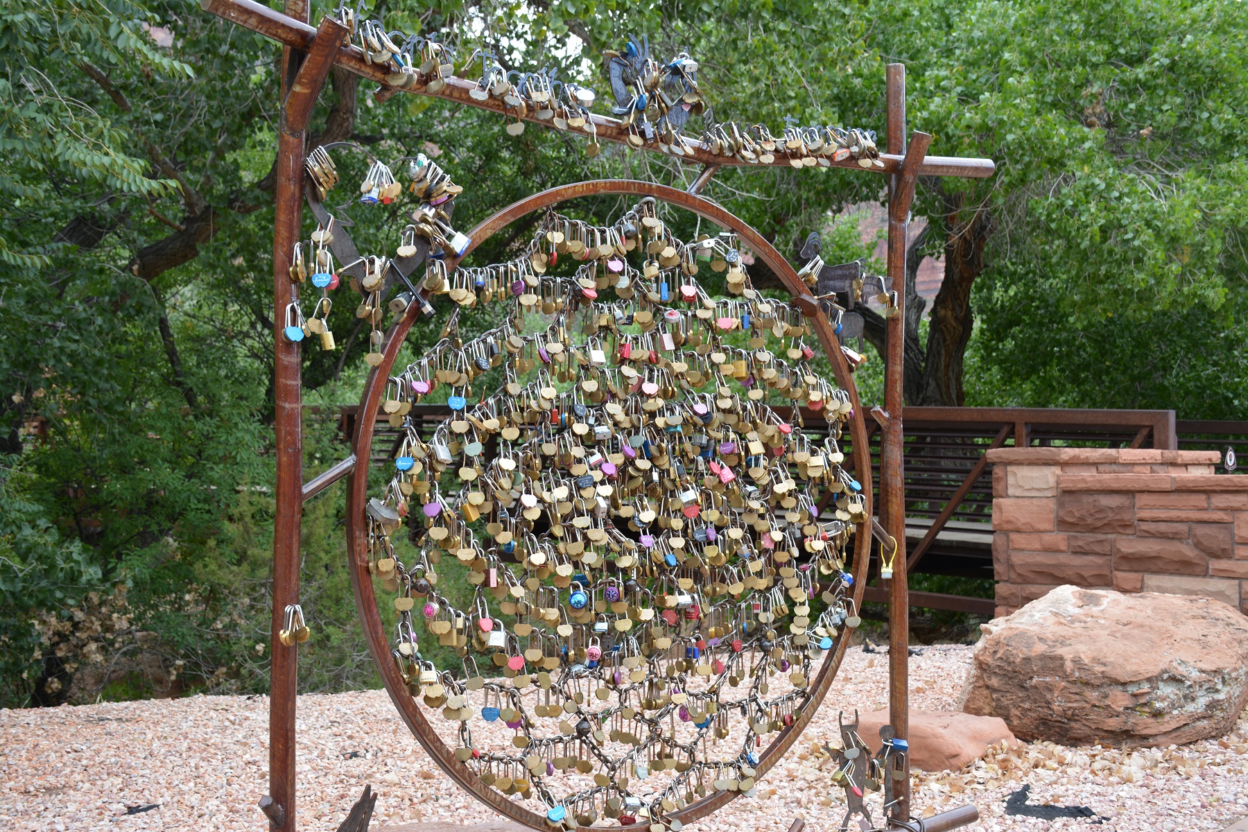 Also in this shopping area is the “Locks of Love” gate. It’s a nice looking metal gate. Couples hang padlocks on this gate and throw their keys in the river to signify that their love is forever locked. What a nice sentiment. I did notice that the gift shop will sell you a padlock in case you didn’t bring your own. They will also sell you the “upgraded” lock which is engraved with the names of your choice. I suspect that the gift shop comes out to the gate after closing time and “recycles” the locks (anything for a buck).