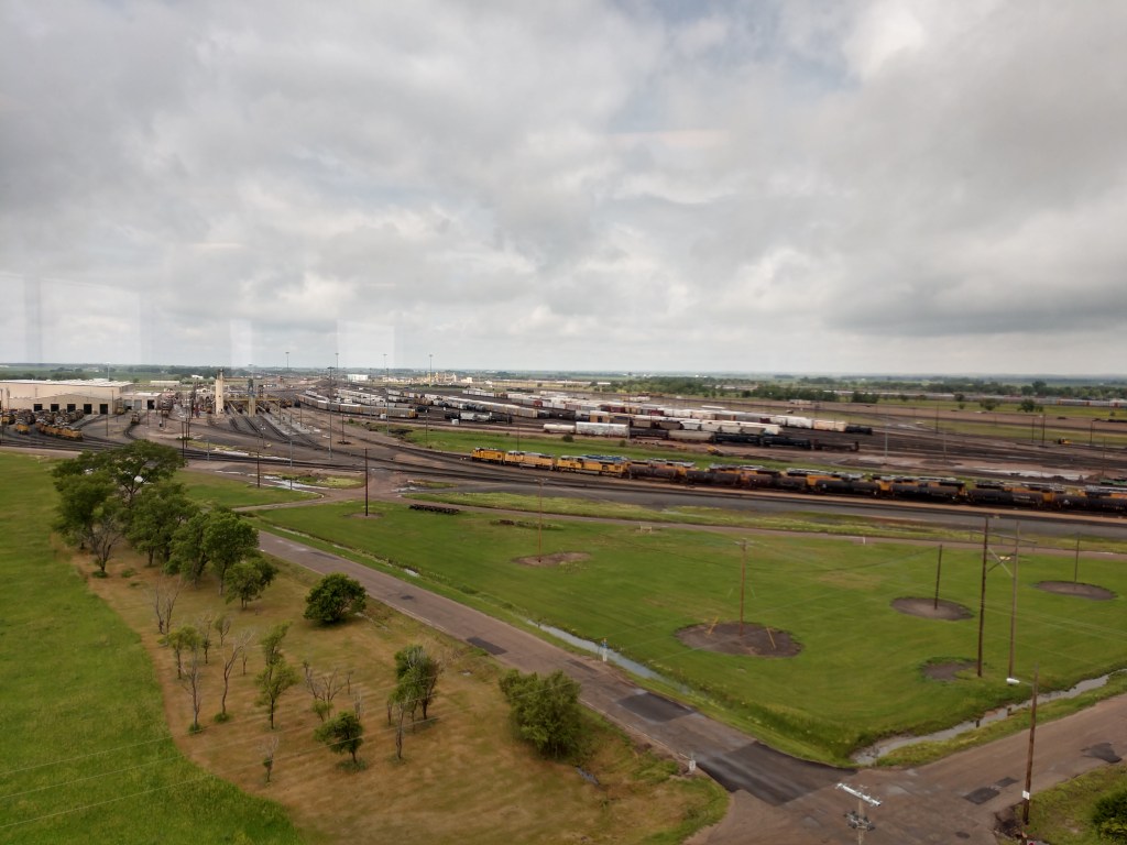Our first stop is at Bailey Yard in North Platte, NE. Our previous trip to this location was problematic in that there are no signs pointing the way. I was trying to navigate there using my not-so-trusty Garmin. If I would have had steel wheels from one of the trains I wouldn’t have had any issues. All the rails lead to this yard and the incredible Golden Spike Tower. After ignoring Garmin’s repeated attempts to get me to drive through a farmers wheat field, we discovered the actual street we needed.