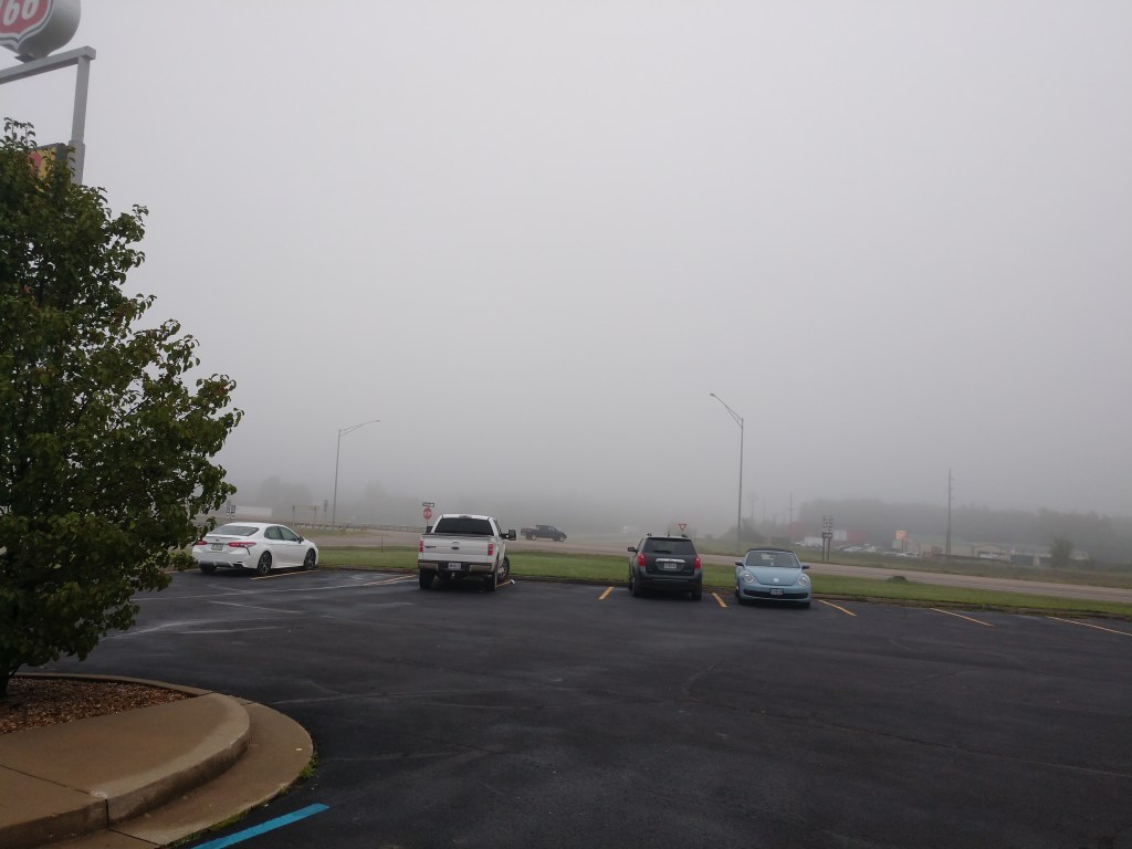 I assume that the Ozark Mountains are still there. I know that the road curved, twisted, gained and lost elevation, and there might have been vehicles going the opposite direction. The visibility at times was bad. Other times it was almost zero. I never did see any mountains to speak of. I should have been wearing the rubber suit again but I really didn’t believe that I would be wet.