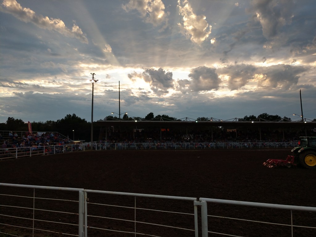 It took almost 90 minutes before I exceeded my pain threshold for sitting. The arena was not well lit but we could see the standing water on the opposite side of the ring. The grounds were really muddy and we made a mess of our motorcycle boots by walking around the outside of the arena because somebody had to have a t-shirt (OK, it was me).
