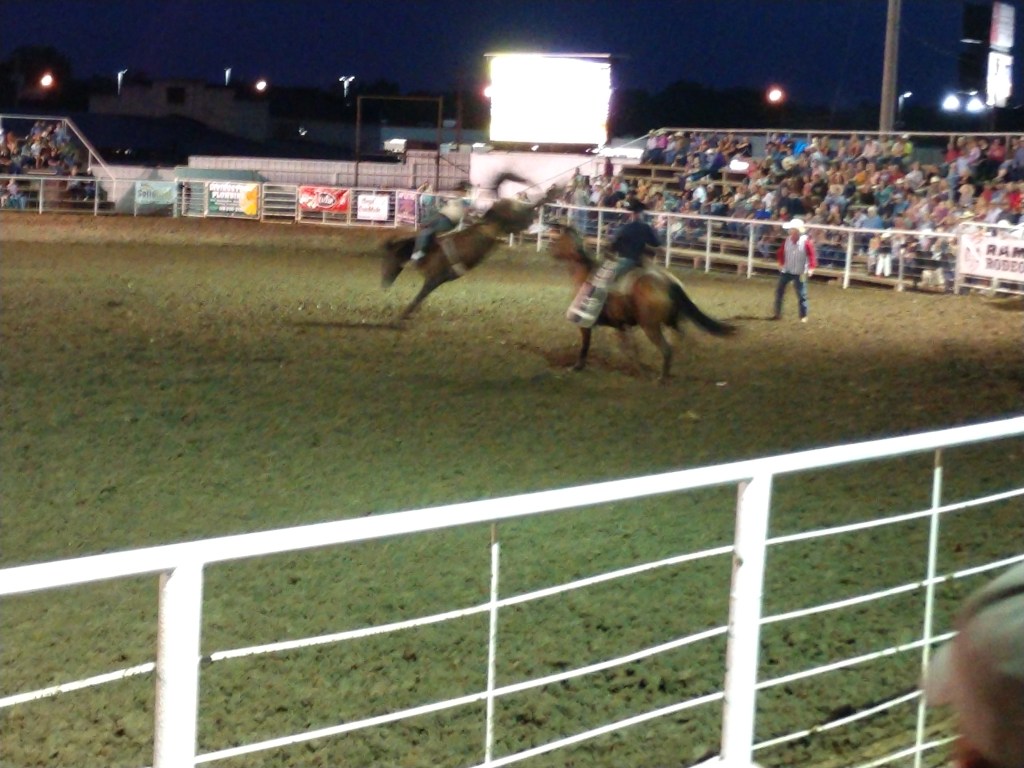 From Afton, it was a short jaunt to the nights destination – Vinita, Oklahoma. Once again there was rain in the area and I was running slightly over the speed limit trying to beat the wetness to our hotel. We just made it. We noticed a large crowd gathering at the facility across the street. The friendly hotel desk clerk informed us that it was the Will Rogers Memorial Rodeo and tonight was the finals.
