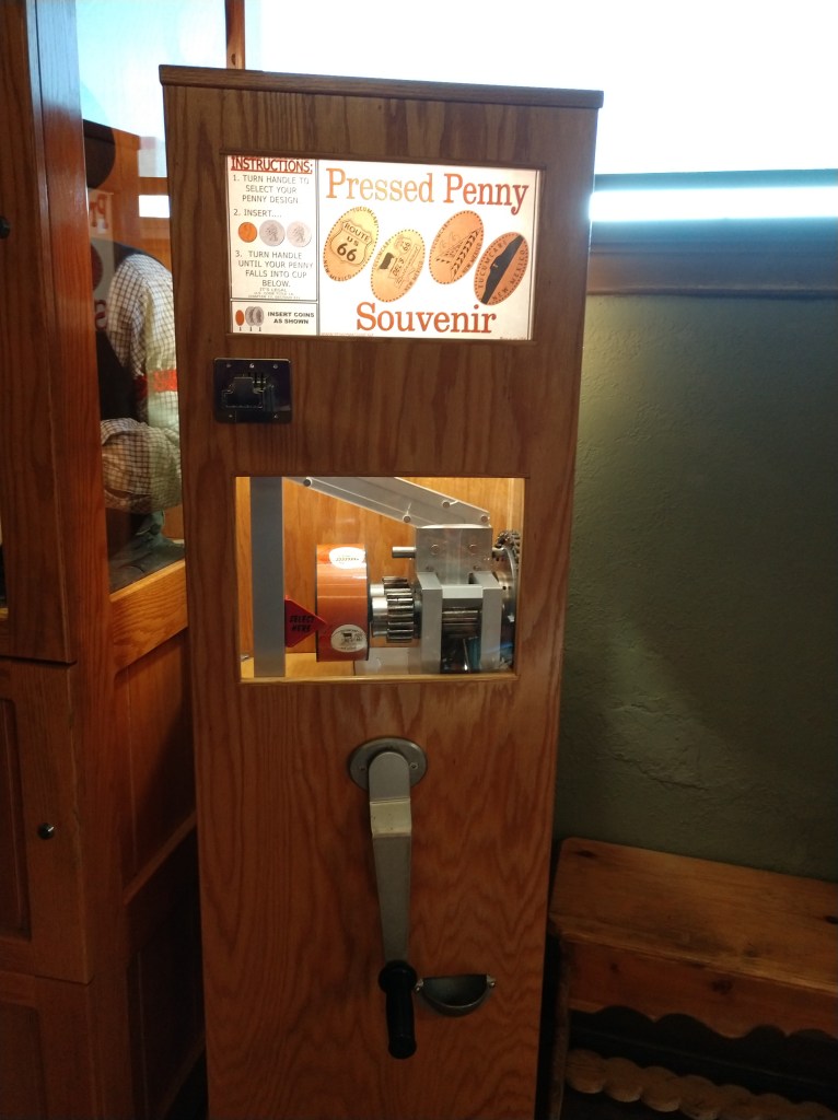 Once I developed a plan of attack, I relaxed some and we went off to dinner at Del’s Cafe (“you can’t miss it, there is a large cow on top of the sign”). The food was good and the AC was working to perfection. We collected our first smashed penny of the trip. I’m hoping for a happier update and more pictures tomorrow.