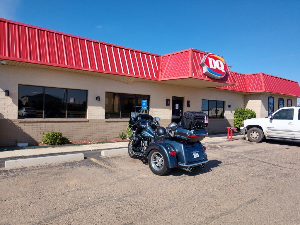 We were targeting Dumas, Texas (I know what that looks like but it’s one word not two and there is no B and only 1 S.) A funny thing happened on the way. I suddenly couldn’t keep the trike steering straight and it pulled itself into a local Dairy Queen. Please note that I didn’t really want to go but the trike wasn’t going any further unless ice cream was consumed. Oreo Cookie Blizzard – done.