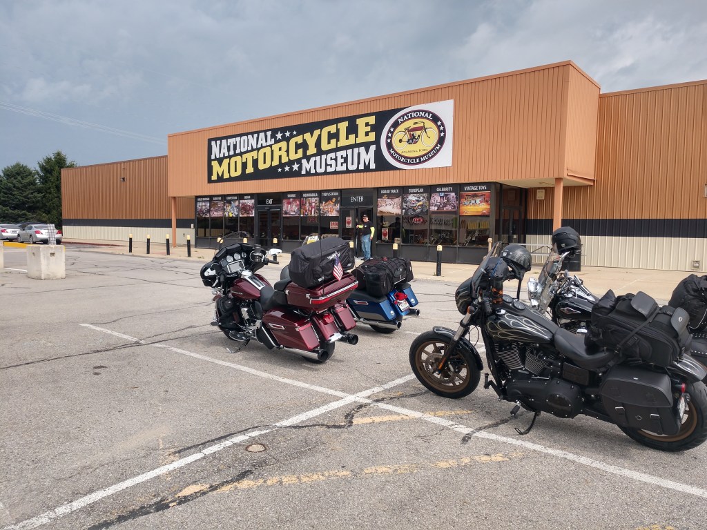 The first and only “planned” stop of the day was the National Motorcycle Museum in Anamosa, Iowa. It was only 30 miles away from Tipton. Well, it should have been 30 miles away. After our gravel experience yesterday, no one trusted me to find a way around the “road closed” sign so we followed the designated detour. Wow – the detour took us about 35 miles out of our way so instead of a short jaunt, we rolled 65 miles into the Museum.