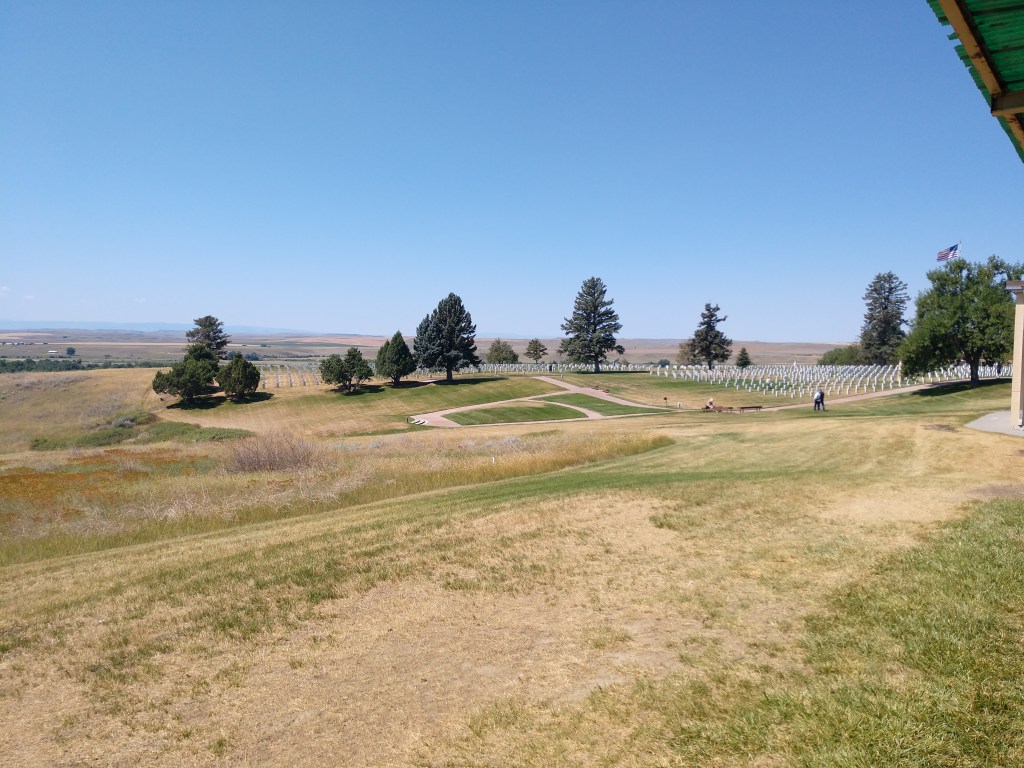 Across the street from the Trading Post is the entrance to The Battle of the Little Big Horn (aka Custer’s last stand). I don’t mean to sound uninterested but I have seen this site multiple times and didn’t feel the need to climb the hill to get a close look at the markers that designate where the cavalry soldiers died. Mike and Max had not been there before and were willing to make the climb. My favorite part of visiting this site is to listen to one of the park rangers present the interpretive review of the story of this battle. Given the current world situation, that presentation has been cancelled. That’s a loss for everyone visiting the site today.