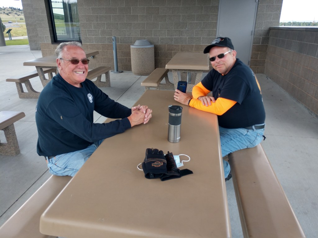 The rest of the afternoon was spent battling the crosswinds of Montana along I-90. We did stop to take a break about an hour outside of Livingston. This rest area was the first I’ve seen with individual small rooms for the rest rooms. I didn’t take any inside pictures of these little concrete rooms – you’ll just have to take my word for it. We did enjoy sitting in the shade while Mike shared some of his HAM radio experience with us.