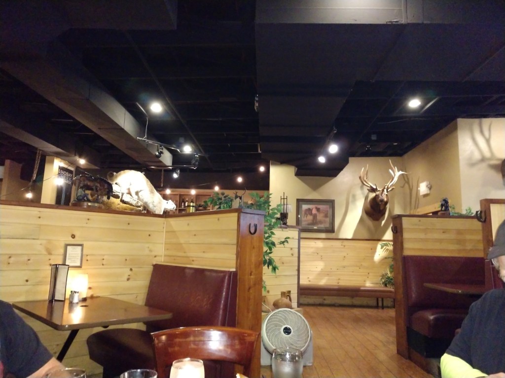 Dinner was next door at Ernie’s Steakhouse. The food was great but the best part was that it was only about 100 yards from our hotel. Ernie must have been a hunter – the restaurant was decorated with a lot of “trophies”.