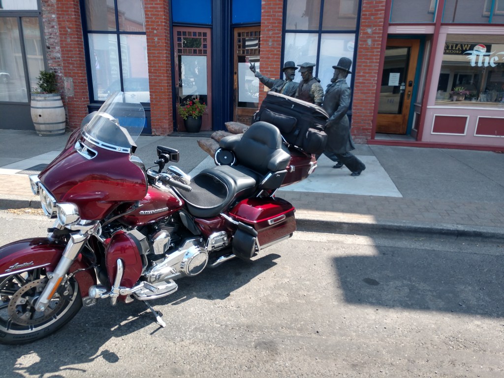 I’m trying to decide whether to join my riding companions tomorrow for a ride up Mount Rainier. It’s supposed to be close to 100 degrees again tomorrow. In the morning I’ll make the choice to either ride with them or head straight for our next nights hotel at Kelso, WA. Either way, we passed the 3,000 milestone – heading for more.