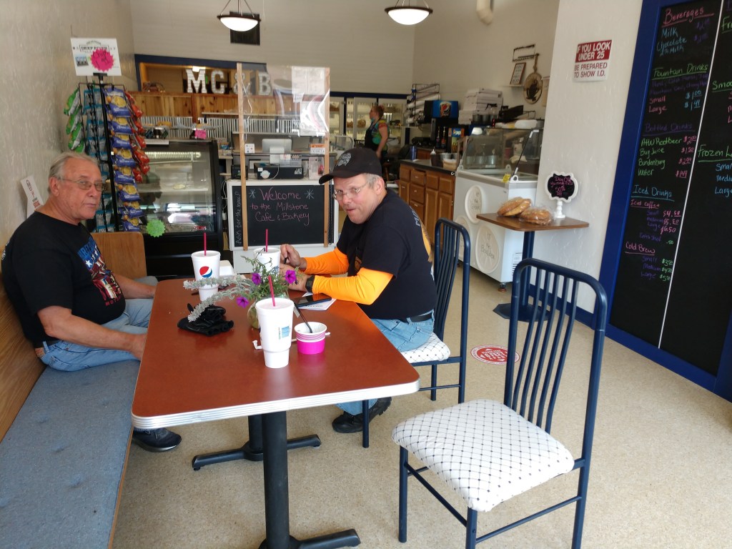 We stopped for gas twice and for refreshment once. That one stop turned out to be really enjoyable. We were looking for a small cafe or diner where we could sit for a little while in the air conditioning and enjoy a cold drink. Bingo!!! We found a great little cafe in Waitsburg, Washington. It was around noon and the temperature was already into the mid to upper 90’s. The cold drink became less important when ice cream was discovered in Mill Creek Cafe and Bakery. Ice cream is certainly one of my weaknesses, as is A/C when the temp is pushing 100.