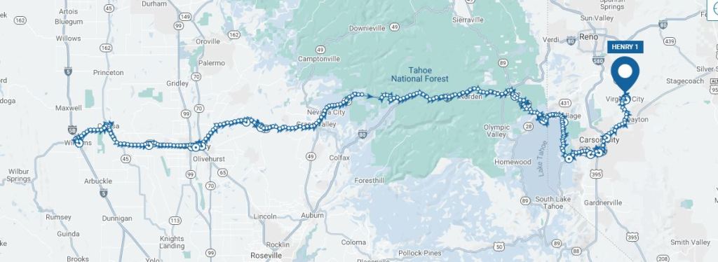 We stayed on the two lane CA-20 and skirted the lake over to the Nevada side. We were on NV-20 except for a short jaunt on I-80. We rode a few miles on the Lonliest Highway – US50. The day’s mileage was wrapped up with 8 miles on NV-342.