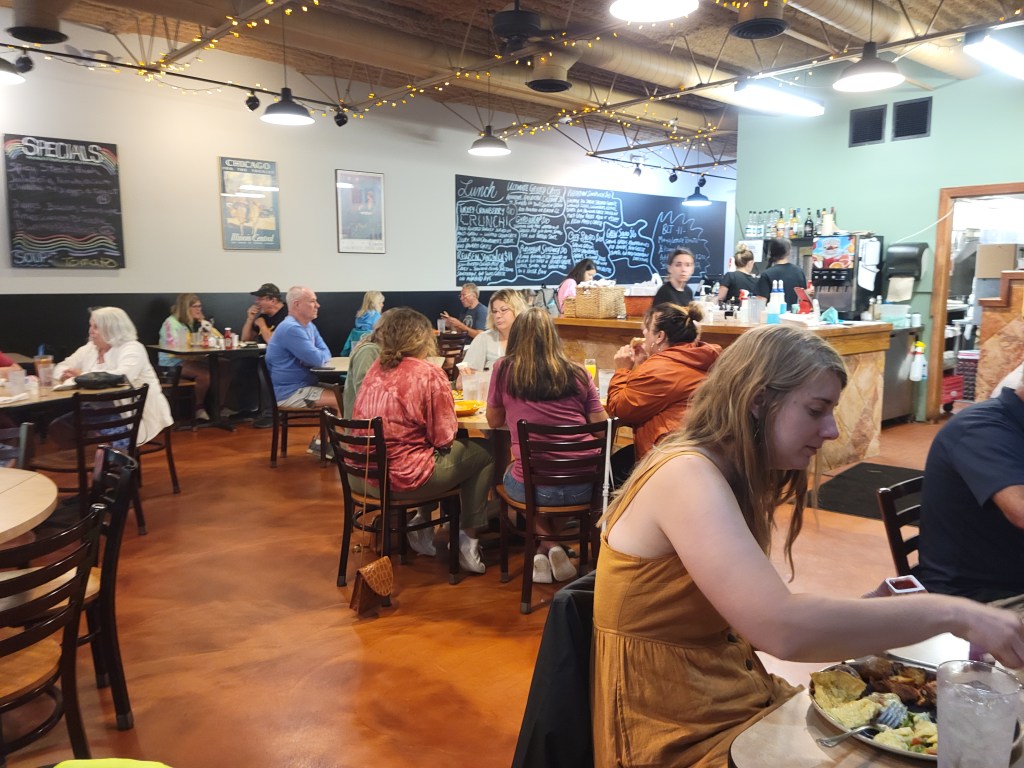 This morning the radar showed that the storms had cleared out of the area and we should have clear sailing up the west coast of Michigan (the Mitt). The roads were damp, the skies were overcast but we were happy to be dry. We rolled out of the motel around 7:30 looking for gas and breakfast. We found both in South Haven, Michigan. We ate breakfast downtown in a very touristy area. The food was good at the Phoenix Street Cafe.
