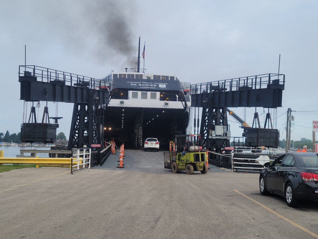 We needed to somehow get to Wisconsin without going through Chicago or Milwaukee. It seemed that there was only one logical way to make that happen from our current location of Ludington, Michigan. The answer was to find THE Badger and let it swallow up our motorcycles. That is exactly what happened.