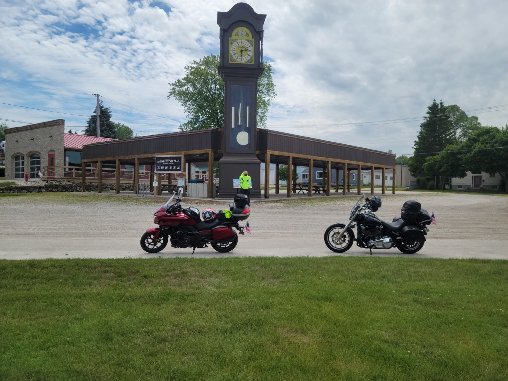 Back on dry land, where motorcycles belong, it was a short jaunt to the next uh, ummm, “highlight” (not sure), something that would be easy to miss without an excellent tour guide like Spencer. It was a spot in the road where in 1964 the Russian satellite Sputnik 4 crashed back to earth. The city of Manitowoc decided it might become a tourist destination and marked the spot with a plaque and a steel ring inserted into the pavement. In Indiana, it’s just another pot hole but in Wisconsin, it’s a site to celebrate.