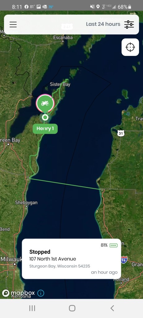 It’s beautiful in Door County but as much fun as the ride up the east side was, the ride south down the western side was not as much fun. The ride south through the jam packed tourist areas of Door County was slow and not fun. Through Egg Harbor and Sister Bay it was like driving through Gatlinburg, TN on Memorial Day and this was just a typical Monday afternoon. There are no pictures of that – nothing could capture how nerve wracking it is to ride with both sides of the road lined with cars where people open their doors and step out in front of you or cars pull out without looking. I was glad to get back to our home for the night in Sturgeon Bay.