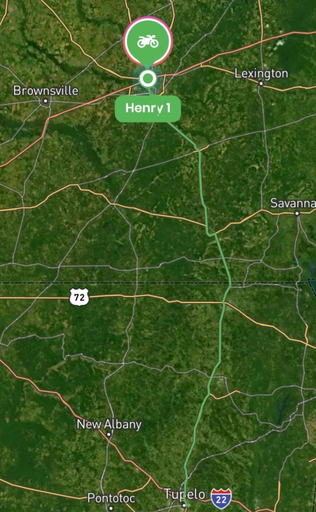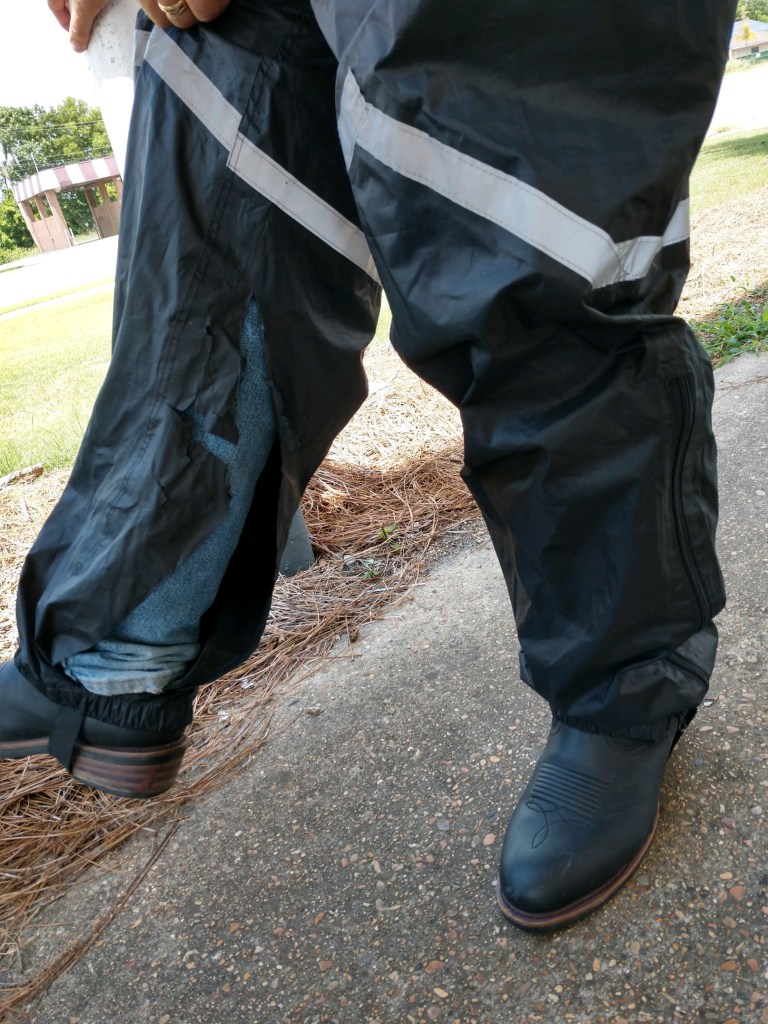 We rolled into Jackson and had 1 notable event. At Tupelo as I was getting off the bike, I caught the pants leg of my rainsuit on the passenger floorboard and ripped it. I really don’t like that suit but I need it (in one piece of course). Jana found it quite humerous.