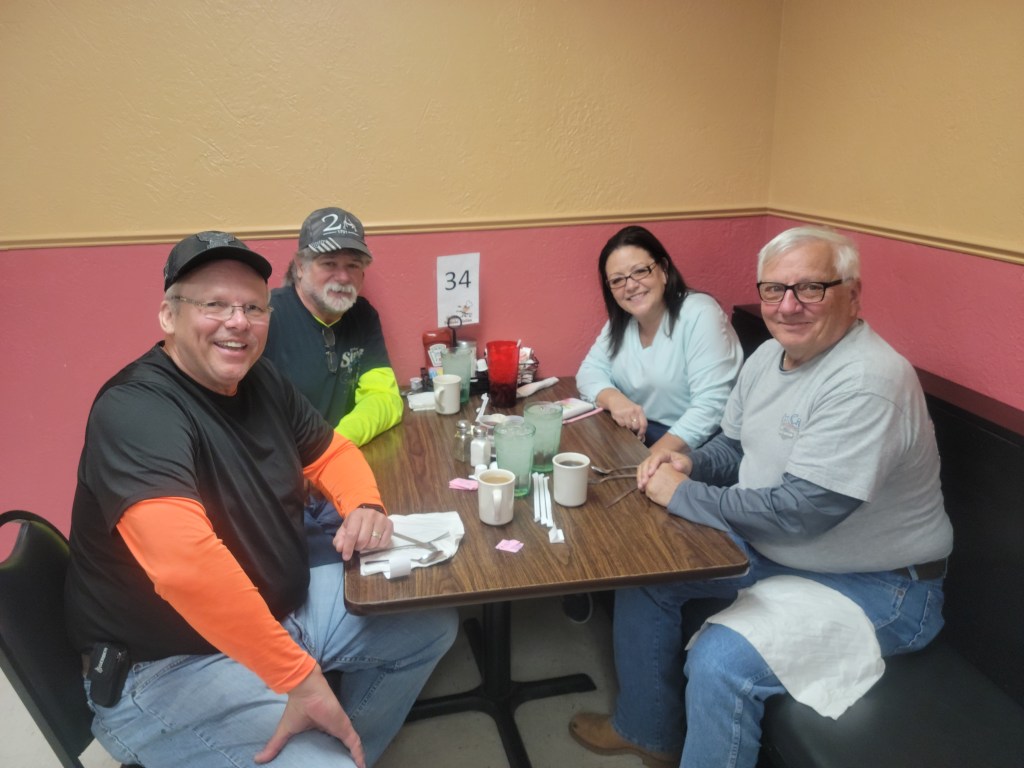 Our Hoosier friends needed to experience the “World’s Greatest Pancakes” and we knew just where to take them. Since they had spent a long day yesterday in the saddle we fired up the truck today and drove the 7 miles to Ye Olde Pancake Station (again). Once again good service and good food but I can’t really speak to the pancakes being the world’s best.