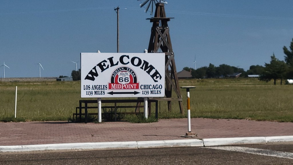 The first stop on the route was Adrian, Texas. The claim to fame here is that it is exactly the mid point of Route 66 between Chicago and Santa Monica. How could anyone discredit this? Most of the old road is gone so exact distance is a good estimation at best. There were several places along the original road that changed configuration so who’s to say what is correct. It doesn’t matter. It draws people in. Today I felt lucky because the Midpoint Café was open. It’s only open Wednesday through Saturday. My last trip through here was on Tuesday. Ugh! The food was good and there were a few couples in the café that day who were driving portions of the old road. It was worth a revisit in my opinion.