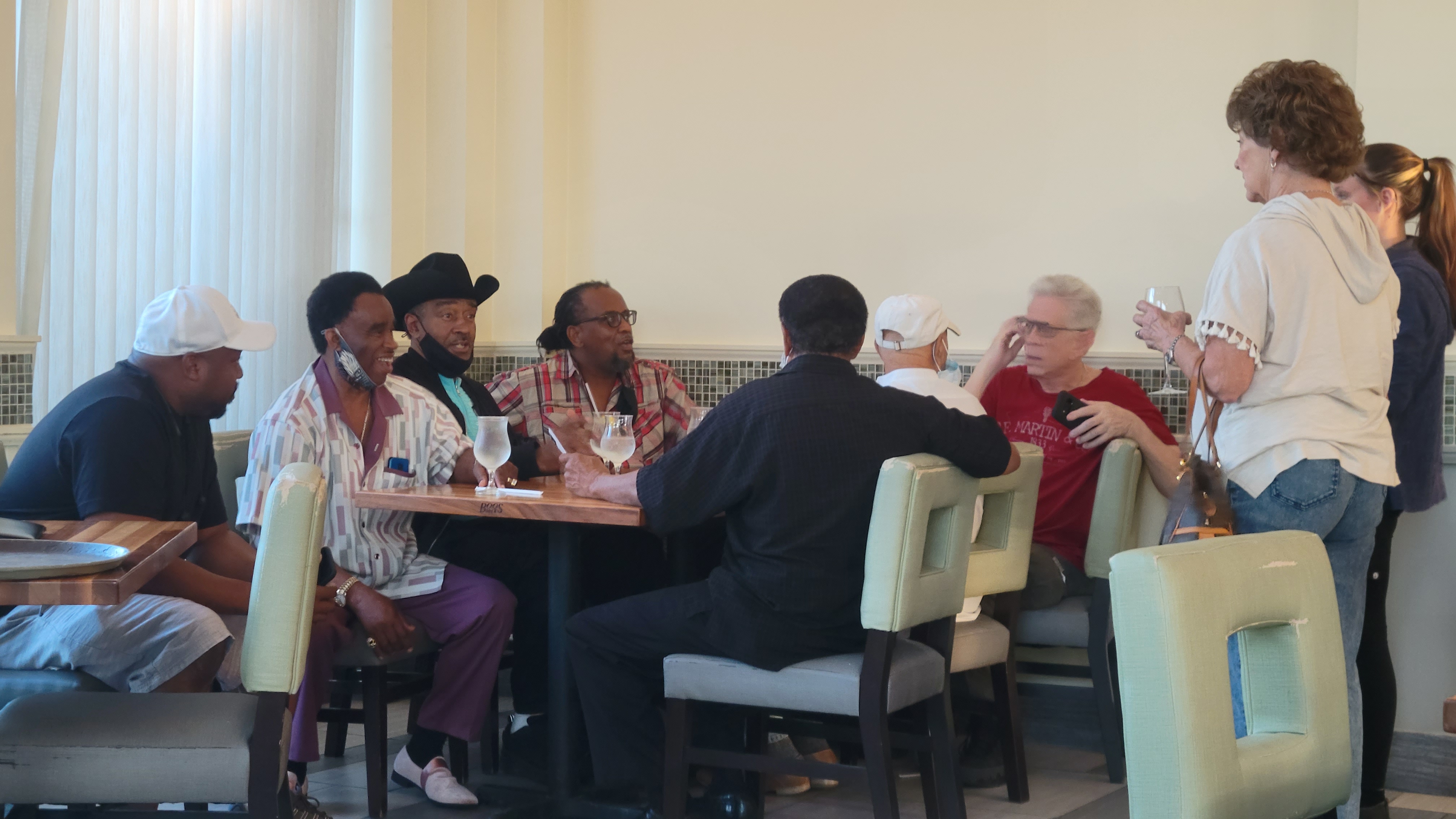 (One positive about staying in Effingham – the singing group The Coasters was staying in our motel and ended up sitting at a table adjacent to ours. I didn’t want to bother them so I just took a bad picture from my vantage point.)