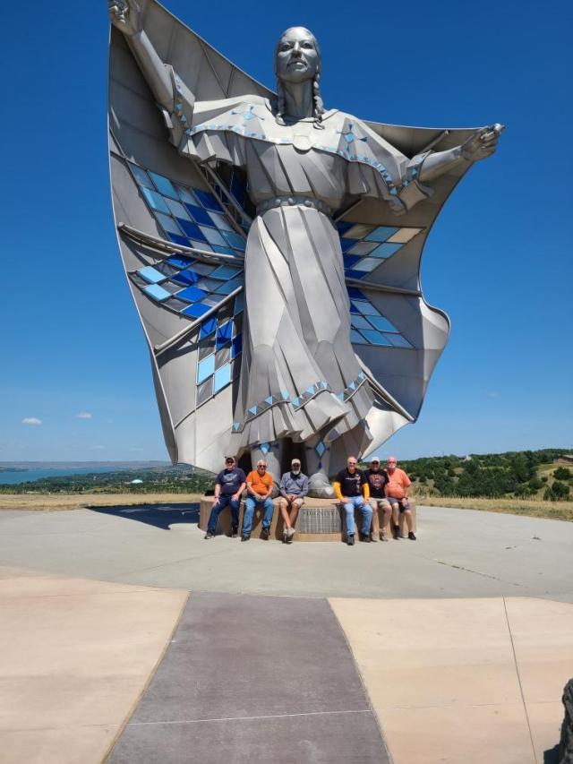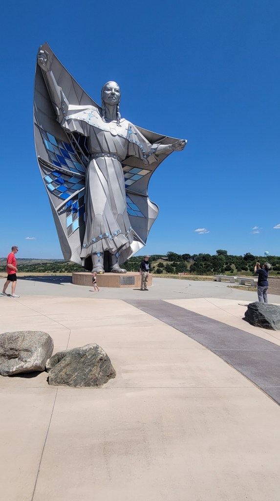 Not long after Mitchell (and the DQ) it was time for a bio-break. Conveniently located was a rest area right on I-90 at Chamberlain, SD. If you’ve followed my blog for a while you know that this place has always felt special to me. Looking down on the Missouri River has always signaled my official entry into the real west. There is now a statue at this location paying tribute the the native Americans who inhabited this area.