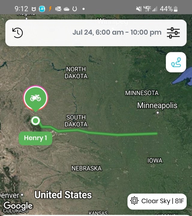 This morning seems like a long time ago. We’re all tired and worn out from pounding down I-90 from Albert Lea, Minnesota to Spearfish, South Dakota. The daily total was 562 miles but we’re here safe and sound.