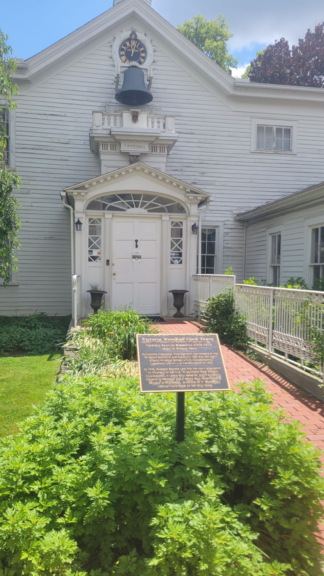 Next on the agenda was something called the Woodhull Clock. I asked my co-planner what that was. He told me that I had added it to the route. Hmmmmm. I had no idea. I put a waypoint (a pin) in the map to keep us on US-40 while traveling on two wheels. It turned out that the pin fell on the small town of Granville, Ohio – home of Denison University. The only tourist attraction listed for that town is the Woodhull Clock. It’s a clock that was built in tribute to Victoria Woodhull, the first woman to run for U.S. President (1872). The clock has a large bell hanging on it. On each hour, a small figure should come out and ring the bell the appropriate number of times. Spencer described it best – Victoria did not do well in the election and “ironically, her memorial clock doesn’t run either.” It hasn’t worked for years.