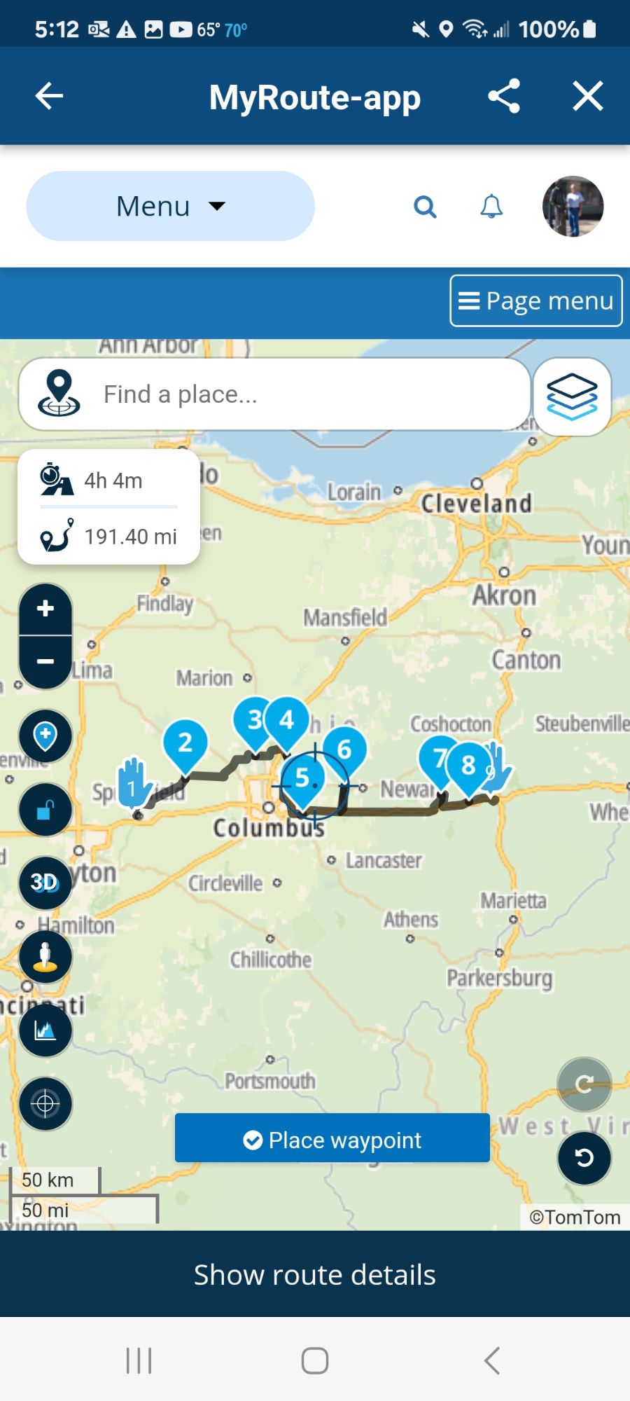 Once again I’m sharing the planned route and the actual path we traveled. Since we’re in the truck, going straight through Columbus, Ohio on I-70 was not a giant challenge. Overall, we saw 3 museums, a broken clock, a bar (for lunch), and another hotel lobby.