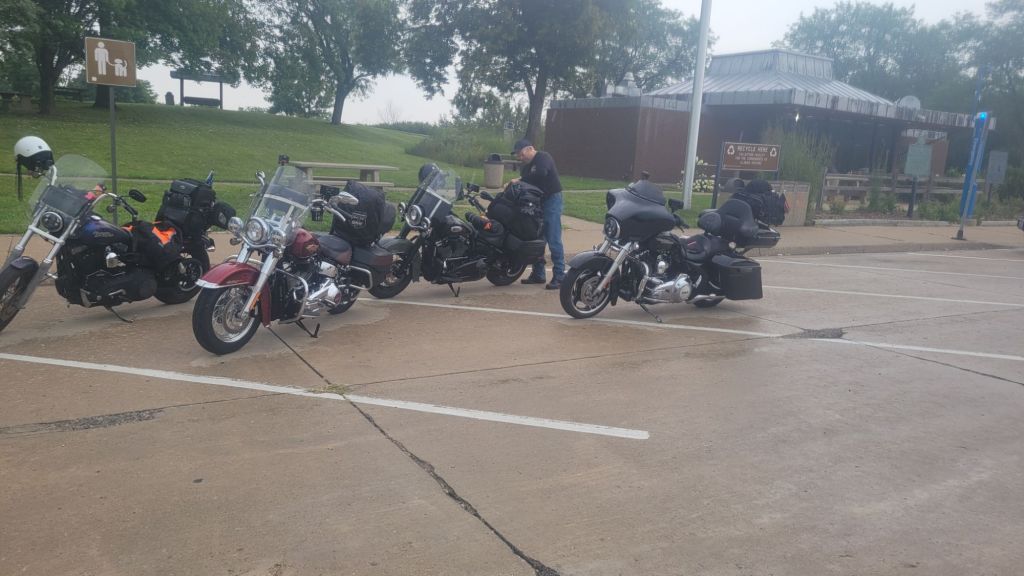There wasn’t a lot of excitement today – a couple of gas stops and a slight detour on some country roads (the sign said there was gas 2 miles down that road – I suspect that it was an old sign). My GPS isn’t working and for a gadget guy like me that is a real issue. Fortunately, 2 of the guys had working electronics and we safely (and sweaty) pulled in to our Newton, Iowa hotel.