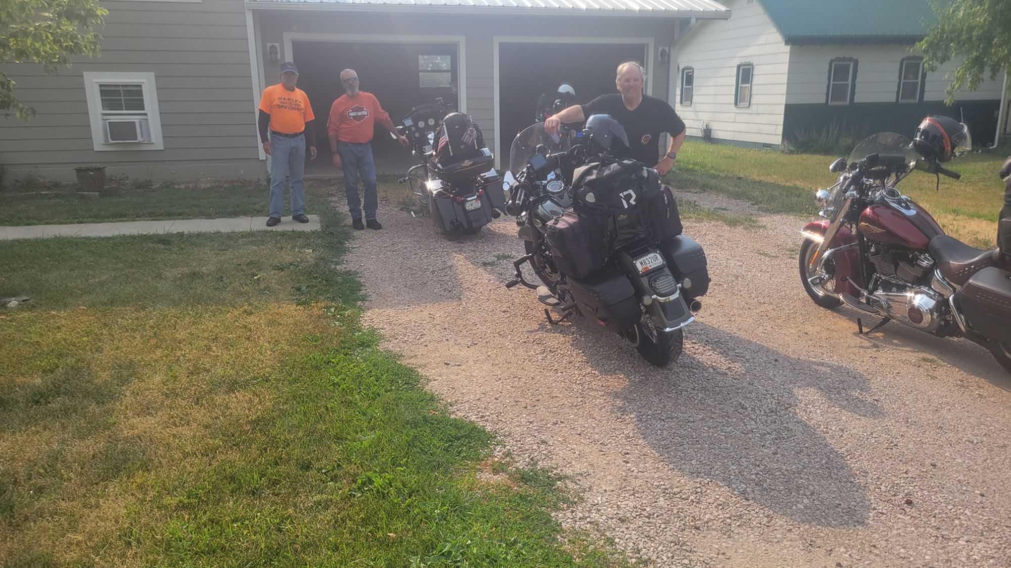 It took us over 3 hours and 172 miles to finish up but our arrival in Sturgis wasn’t without a challenge today. While South Dakota DOT denies any road construction along US34, we road through about 12 miles of chip-and-seal resurfacing today. (If you’re not familiar with chip-and-seal you should ask Google to show you some examples.) The roads are coated with sand and then rocks and finally by a layer of oily tar. None of those substances are motorcycle friendly or at least not friendly to me and my motorcycle. Plus there is nothing like the odor that comes from fresh tar and grasshoppers baking on a motorcycle engine.