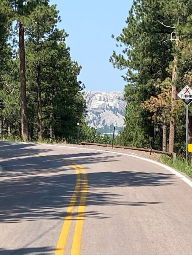 Iron Mountain Road is not my favorite kind of route. I am not the typical motorcycle rider who is looking for twisty, technical roads. I want to cruise along at a leisurely pace and look at the scenery. That is not possible on this road. The pigtails (360 degree, corkscrew turns), and the switchback curves really keep my on my toes. I am not as technically proficient at this as my friends so I tend to lag behind. They do a great job of making sure I am OK. I appreciate their thoughtfulness. The views from the tunnels on Iron Mountain Road are really unique. You get great views of Mount Rushmore.
