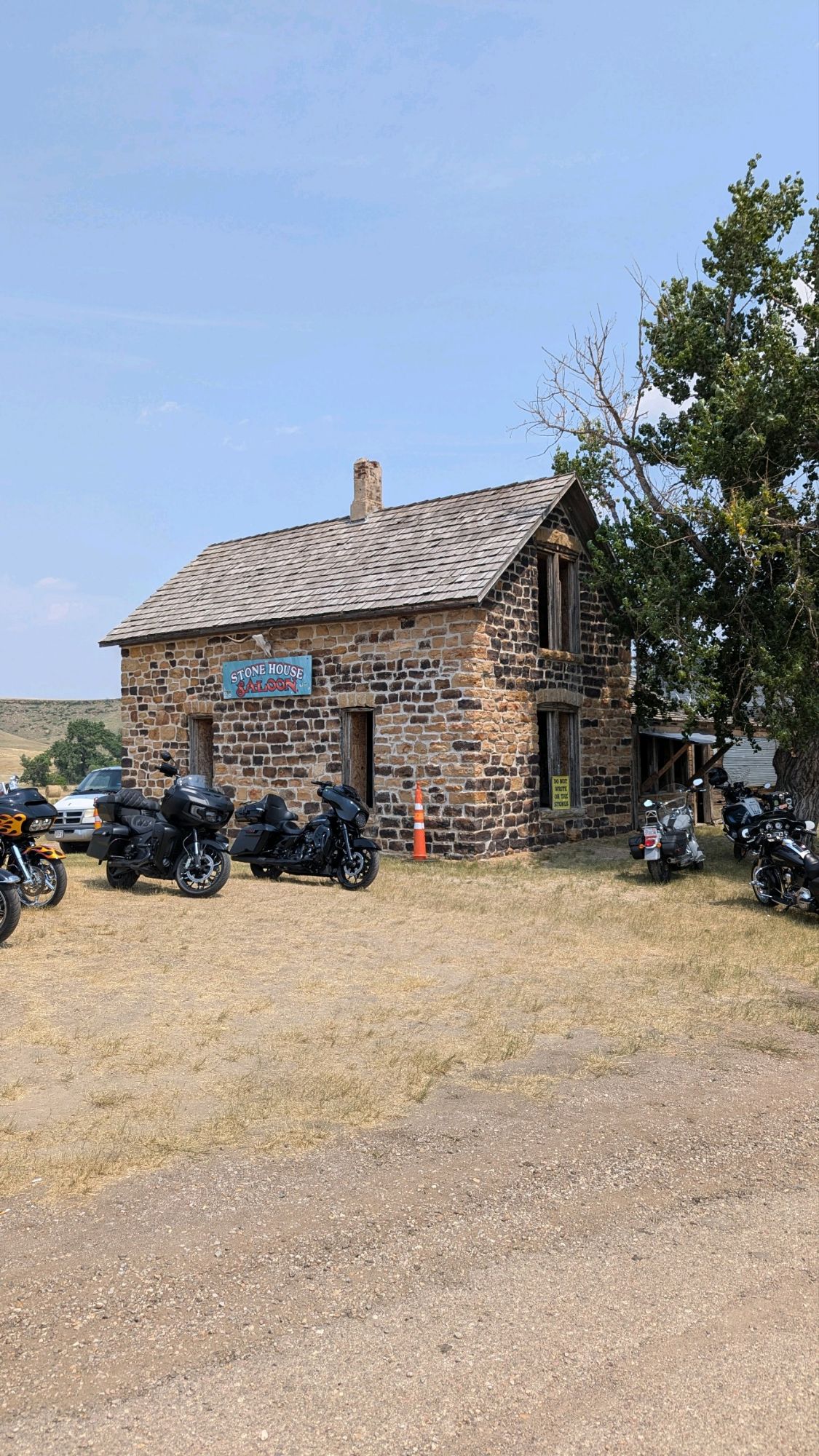 The only other real point of interest today was a place Max had heard about called the Stone House Saloon. What else would you call a bar in the middle of nowhere that is located in an abandoned house made of field stones? The saloon does not offer much in the way of food but you can overdose on the quirkiness. We pulled in on a gravel driveway and the parking lot is actually a bumpy piece of land that has a definite slope to it. I found it slightly unsettling.