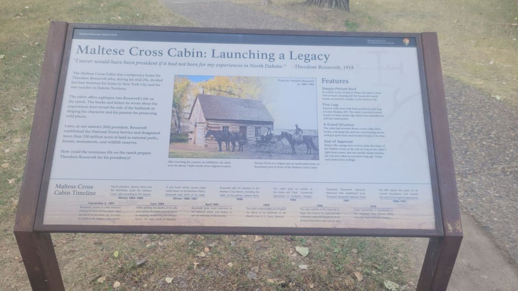 We left the Painted Canyon and passed through the tourist town of Medora (where we will spend the night) and entered what is known as the “South Loop” of the park. The visitor’s center at the south loop offered the opportunity to buy more stuff that I didn’t need as well as see the cabin known as “The Maltese Cabin”. This cabin was a hangout for Teddy Roosevelt and has been moved from it’s original location to near the visitor’s center. For me, a history buff, it was nice to see but this National Park is experiencing the same massive numbers of tourists as other attractions. I’m glad people are discovering the beauty of this nation but why do they have to do it the same day I’m trying to see it?