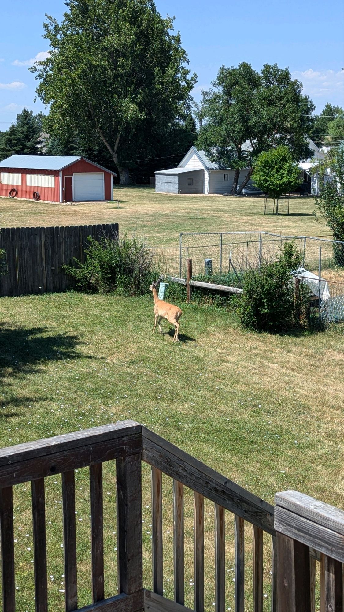 I was at the sink in the kitchen, refilling my water bottle when I noticed a visitor in our back yard. I’m pretty sure she was here to tell us goodbye and wishing us safe travels. Why else would a deer be in the middle of a residential area?