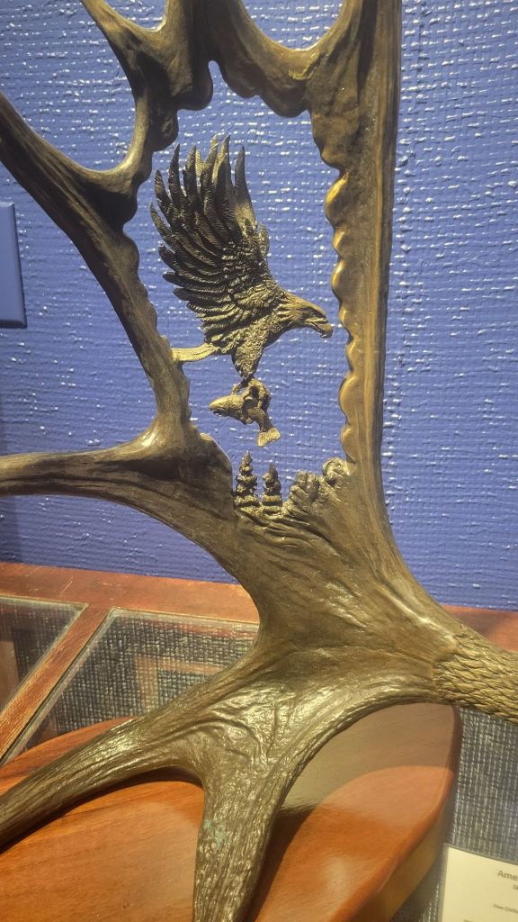 Jana did way more than her share of driving today – I only had to scream 6 times. The alternate route I chose to keep us off of the interstate took us right into Muskogee, Oklahoma. All I knew about this town was that it made a great rhyming lyric in “Okie from Muskogee”. (Ha ha – now that song is stuck in your head too!). It turns out that there is a really nice museum in Muskogee called the “Five Civilized Tribes Museum”. There is a history of the 5 native American tribes that populated this area along with some amazing art work. There was a small sign that said no photography inside the museum. I would never break a rule like that – my phone did this one all on it’s own. I wish I had that kind of talent.