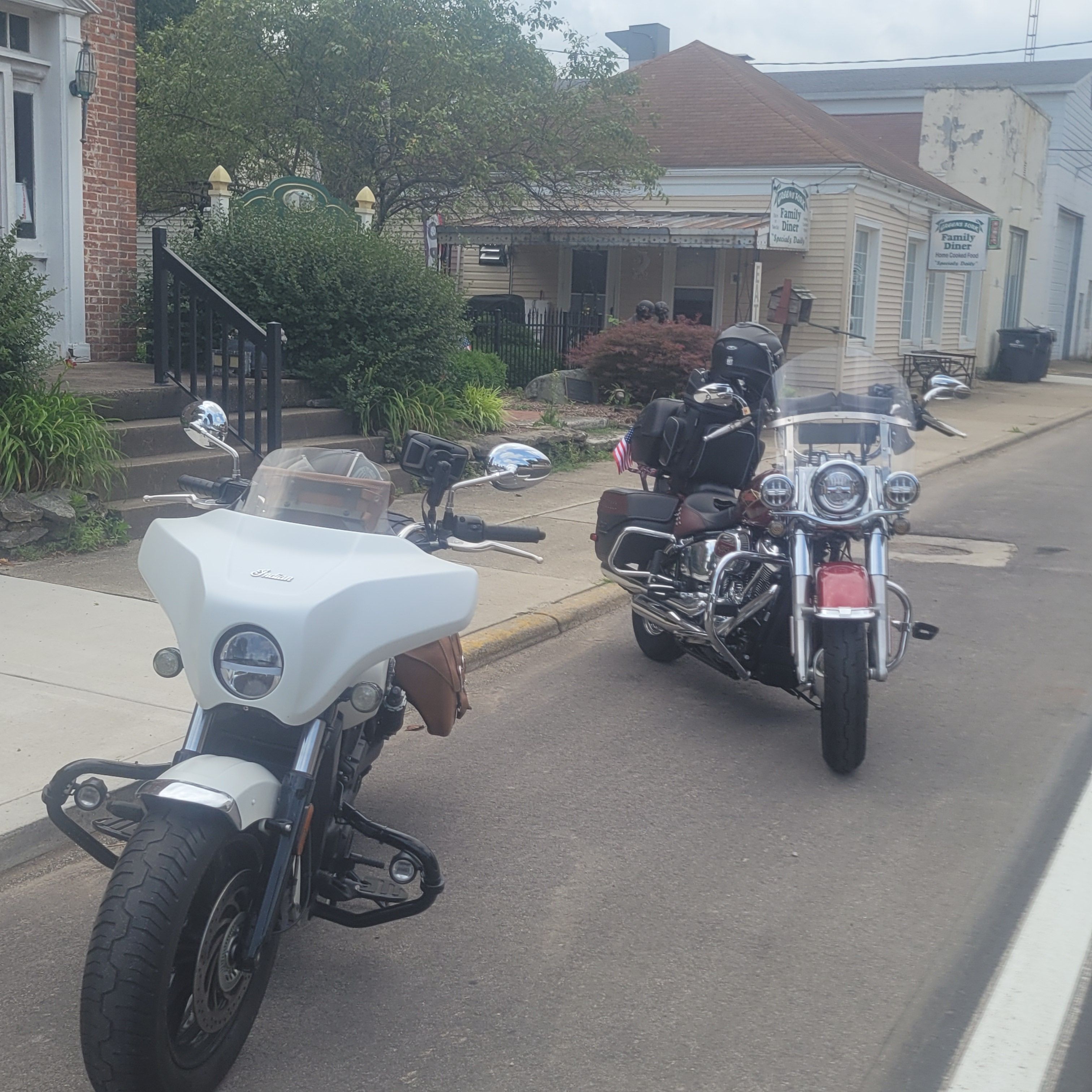 We made it to our planned destination, Washington Courthouse, Ohio. We made 1 stop for lunch and 1 stop for gas. We got rained on 3 and a half times. Mrs. Henry handled her motorcycle like the veteran rider that she is. The rainsuits remained packed away the entire day. My jeans were pretty wet from the knees down to my ankles. The roads were wet almost the entire day. We’re still speaking to each other. After my reluctance to start this adventure and tryng to suggest the easy way out, we’re on our way to “Almost Heaven”.